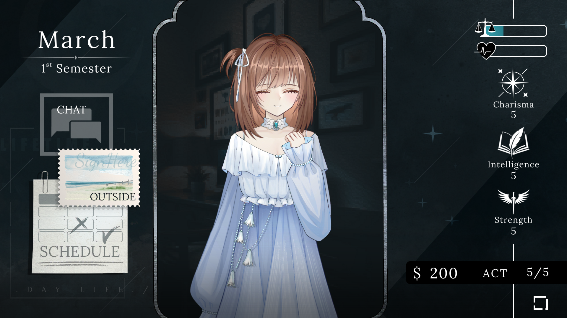Across 20 rounds/20 semester, your daughter grows from a child into a teenager, ultimately reaching one of eight unique endings, unlocked through attribute thresholds or clues discovered through conversation.